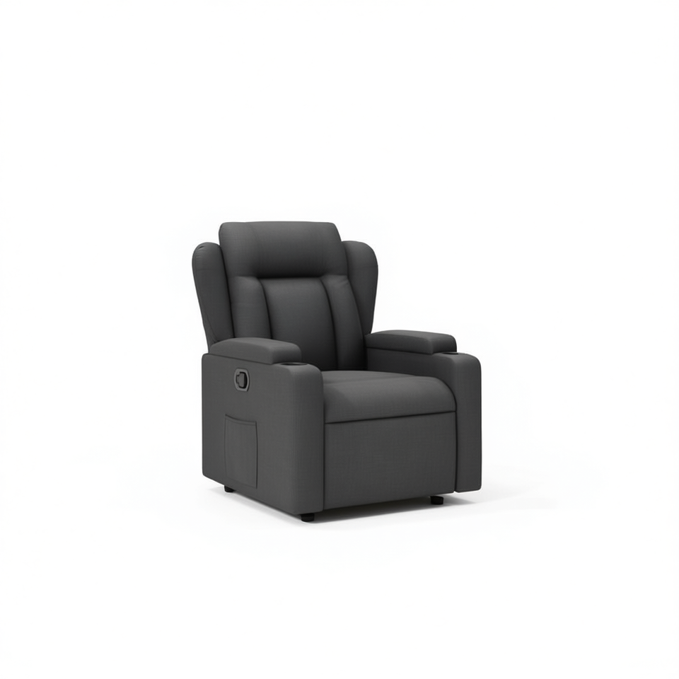 Poltrona Reclinabile Grigio Scuro in Poliestere, Funzionamento Manuale, Telaio in Metallo, Design Contemporaneo, Arredamento per Soggiorno