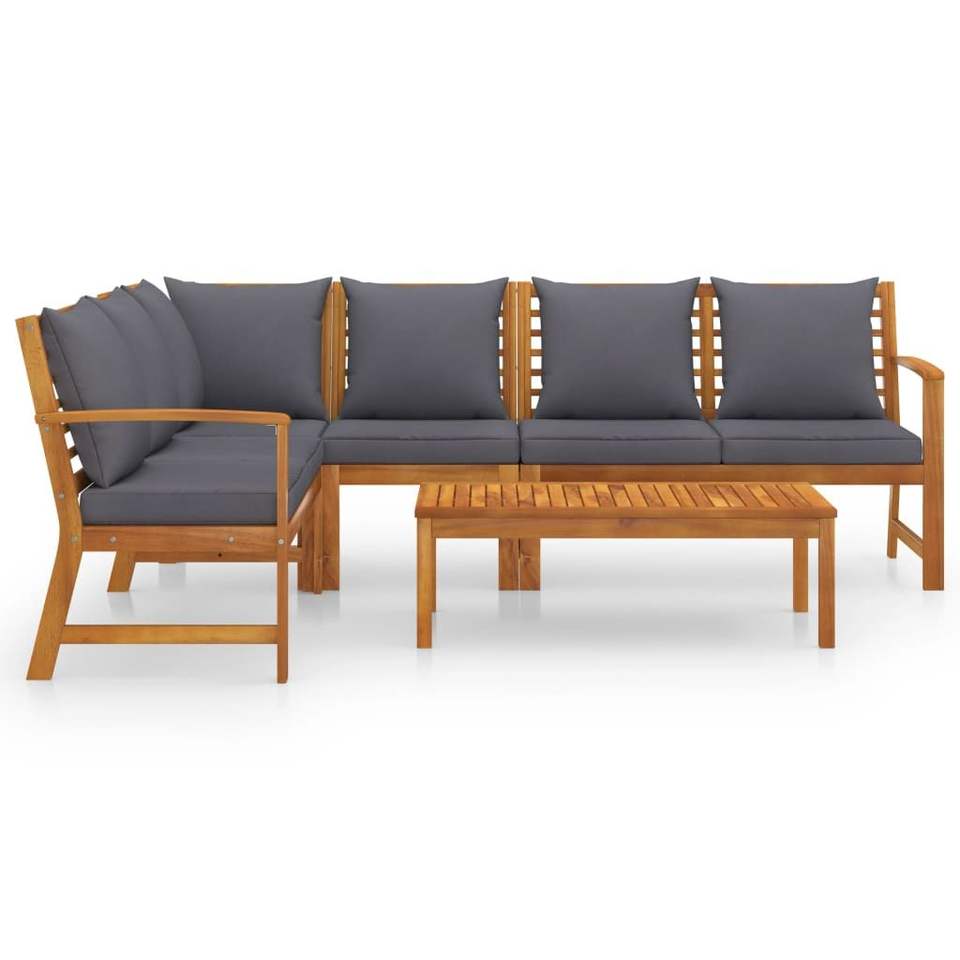 Dark Grey Solid Acacia Wood Garden Lounge Set Medium Polyester Patio Furniture