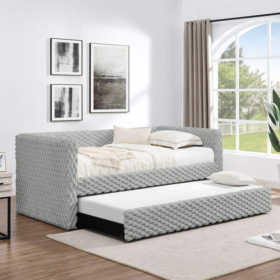 Dark Grey Twin Size Daybed Upholstered Sofa Bed with Pull-out Bottom Plaid Corduroy Fabric Dimensions 86\"*43.5\"*34\"