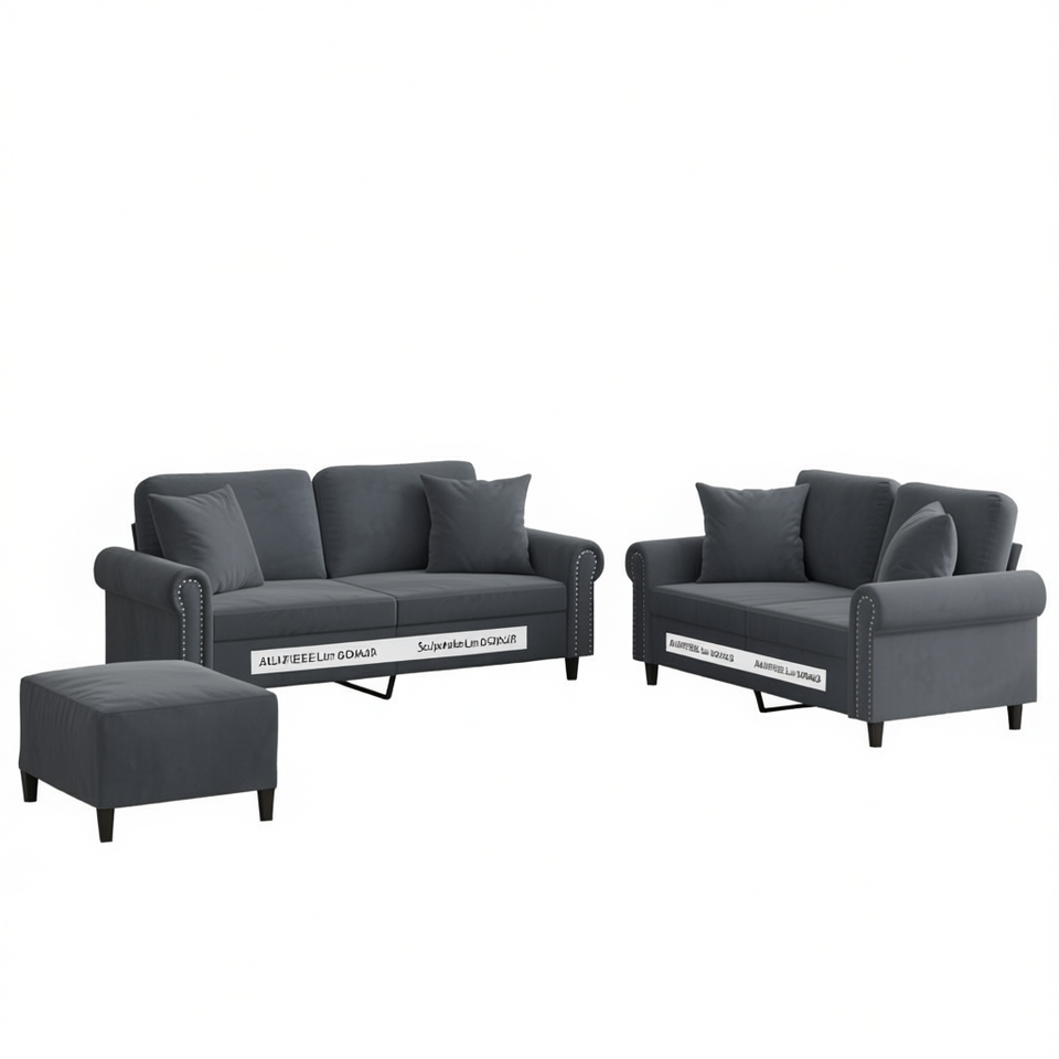 Dark Grey Velvet Sofa Set 100% Polyester Living Room Furniture Contemporary Modern Design