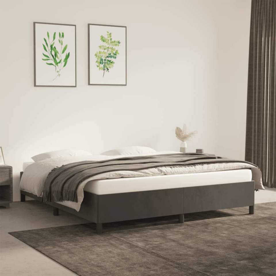 Struttura letto imbottita in velluto grigio scuro 100% poliestere, realizzata in compensato e legno ingegnerizzato