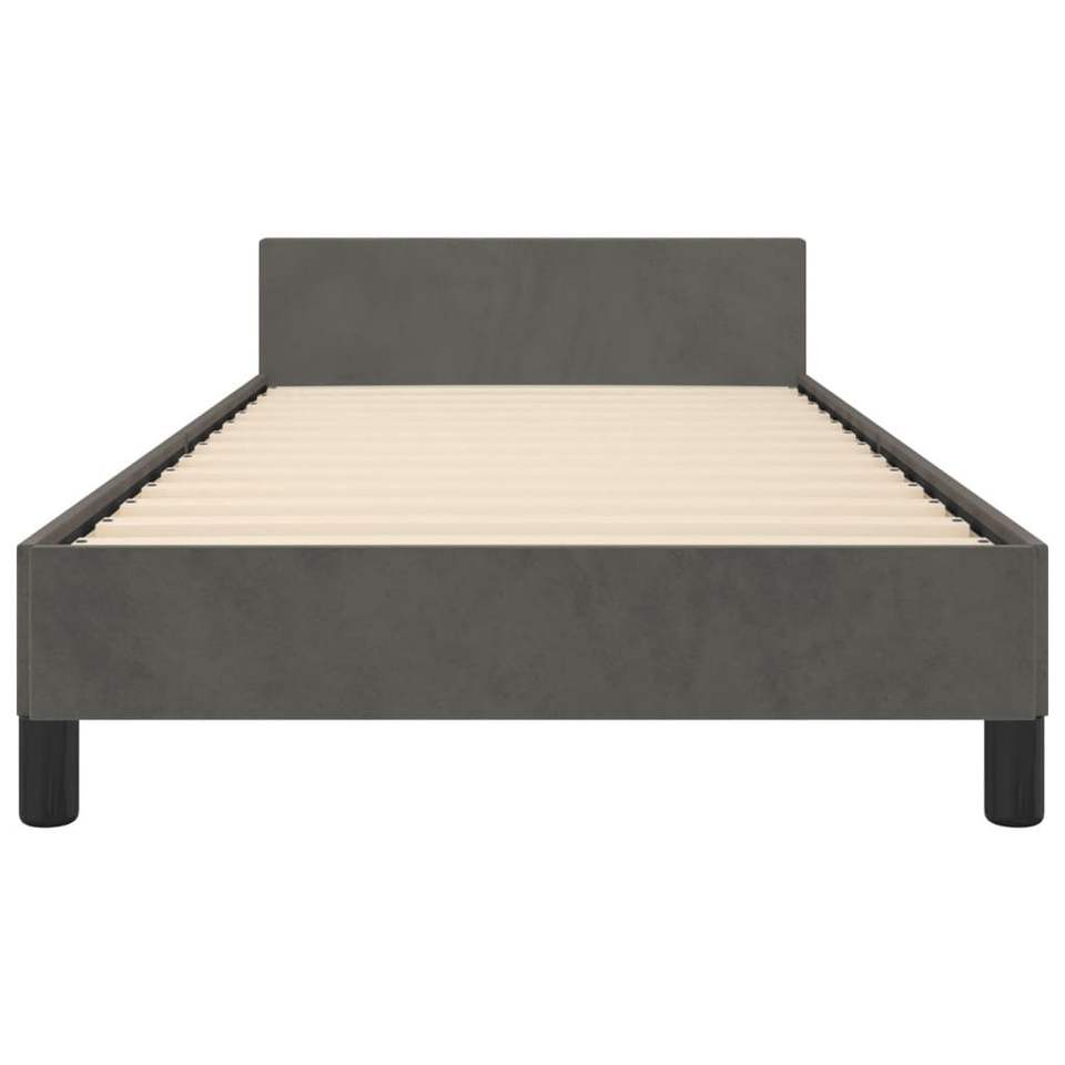 Dark Grey Velvet Upholstered Bed Frame with Headboard Engineered Wood Product