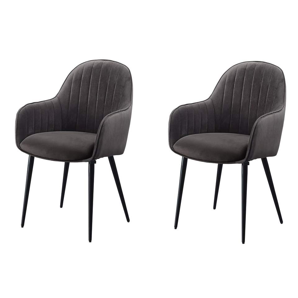 Set di 2 sedie da pranzo con retro ciuffo grigio scuro e nero