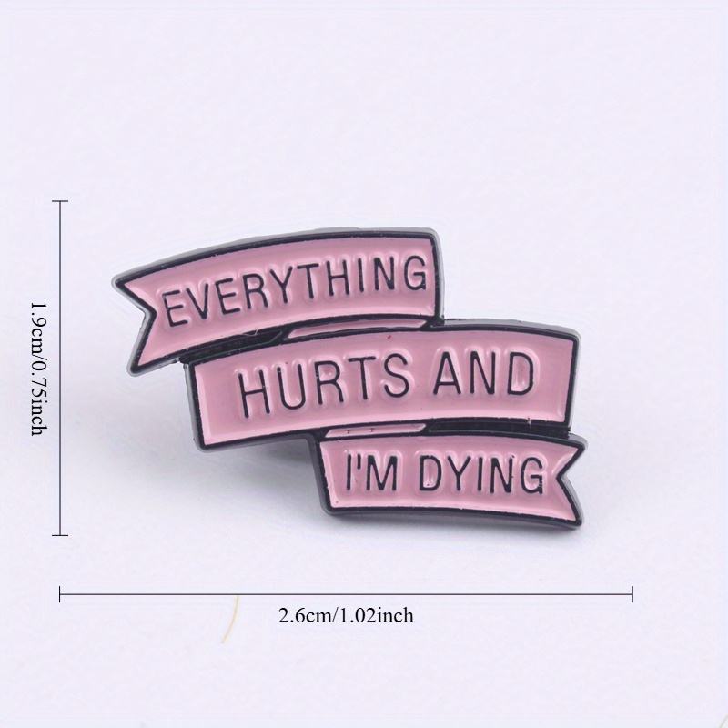 Dark Humor Office Brooch - "Everything Hurts and I'm Dying" with Pink-Black Contrast, Subculture Style Accessory