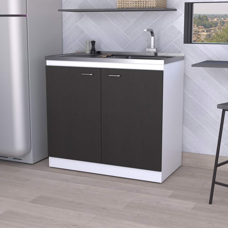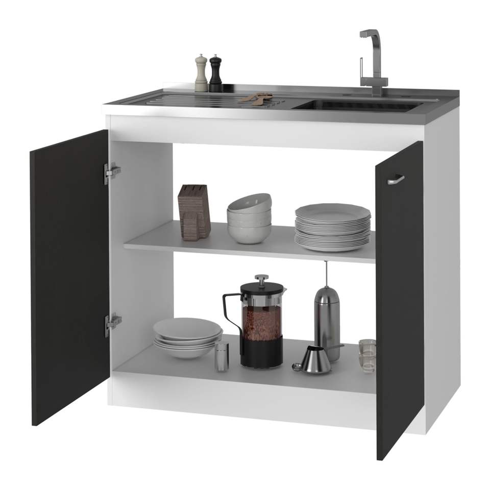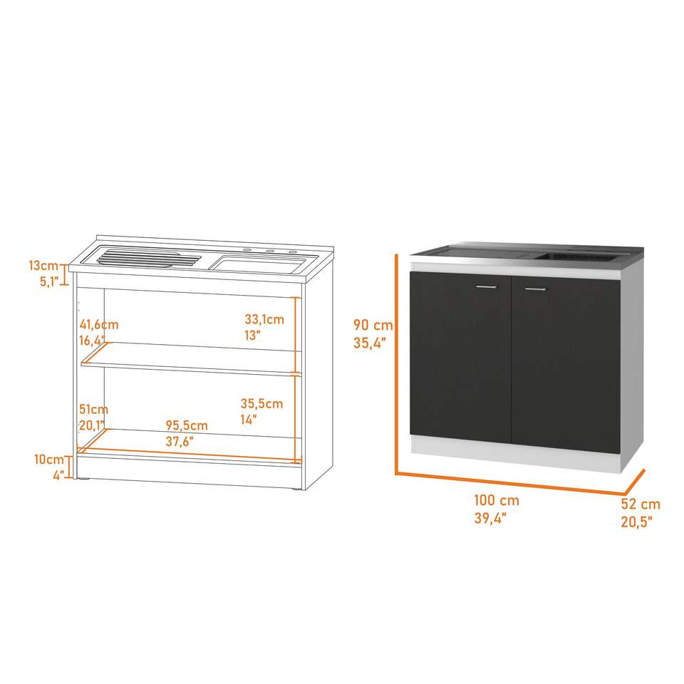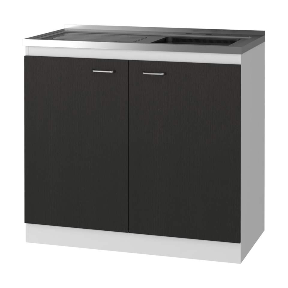 Mobile da Cucina Rettangolare a 2 Ante in Noce Scuro con Lavello Integrato per l'Organizzazione della Cucina