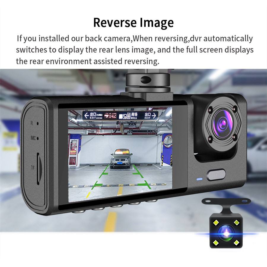 Dash Cam 3 Ch for Car 1080P HD Dash Cam 3 Camera Motion Detection Dashcam 24H Parking Monitor Dvr 170 FOV Camera for Car