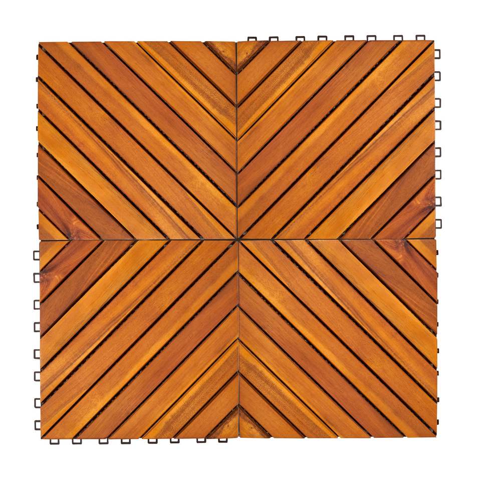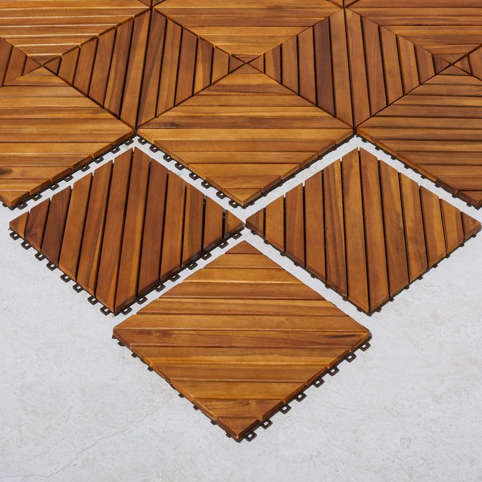 Dashiell Set of 10 Interlocking Acacia Deck Tiles 12-Diagonal Slat Design Premium Outdoor Flooring