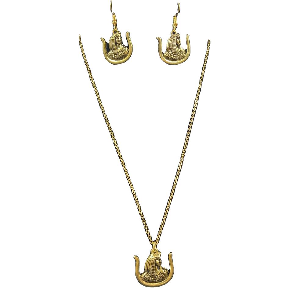 Daughters of Isis Sister Vintage Gold Plated Pendant Simple Earring Necklace DOI Ancient Egyptian Arabic Order Nobles Jewelry