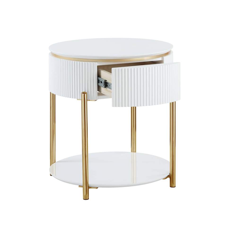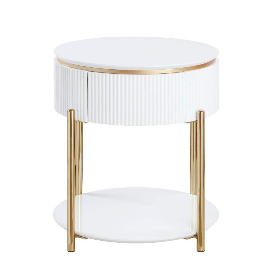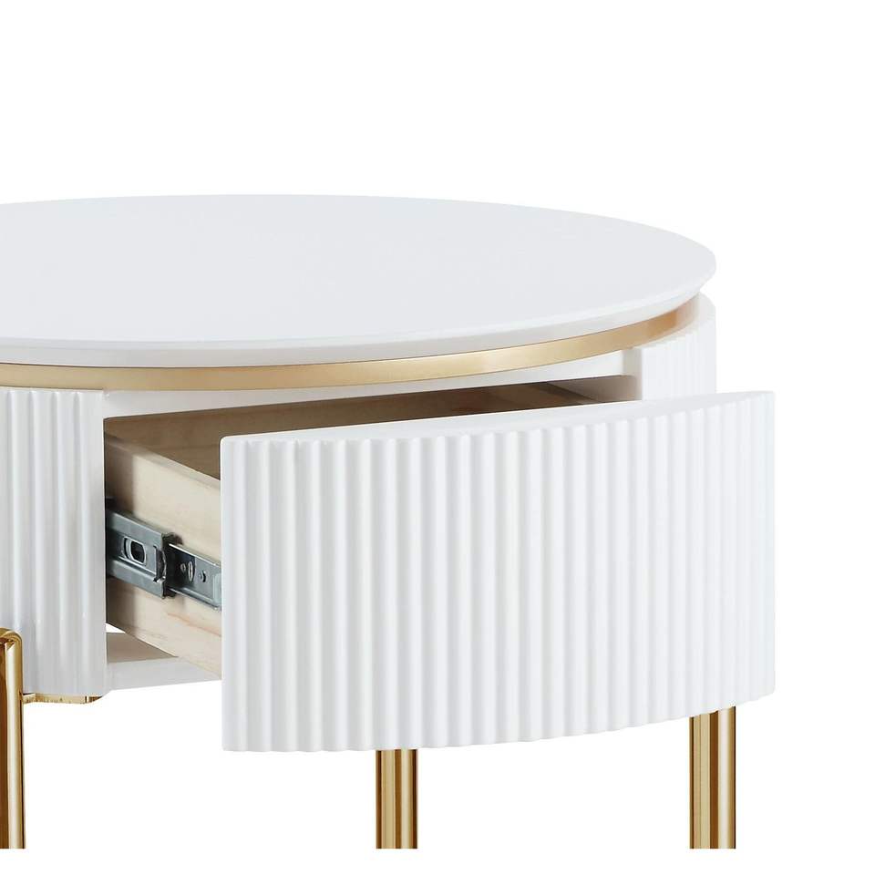 Tavolo consolle Daveigh bianco lucido con finitura oro