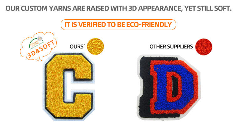 Davina Custom High Quality Wholesale Iron-on or Sew-on Big Size Letters Towel Patches Embroidery Chenille Patches