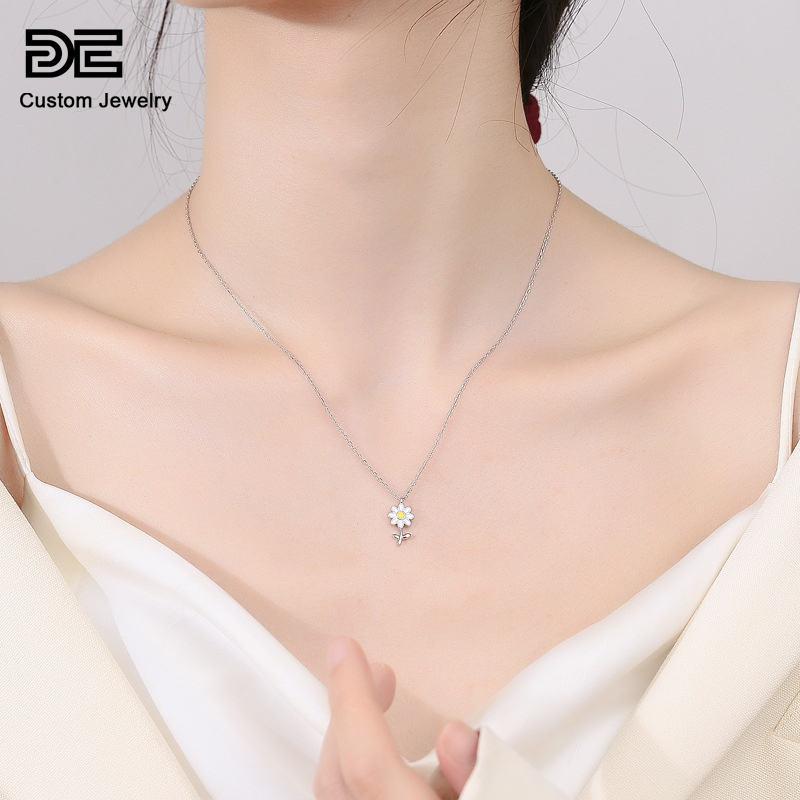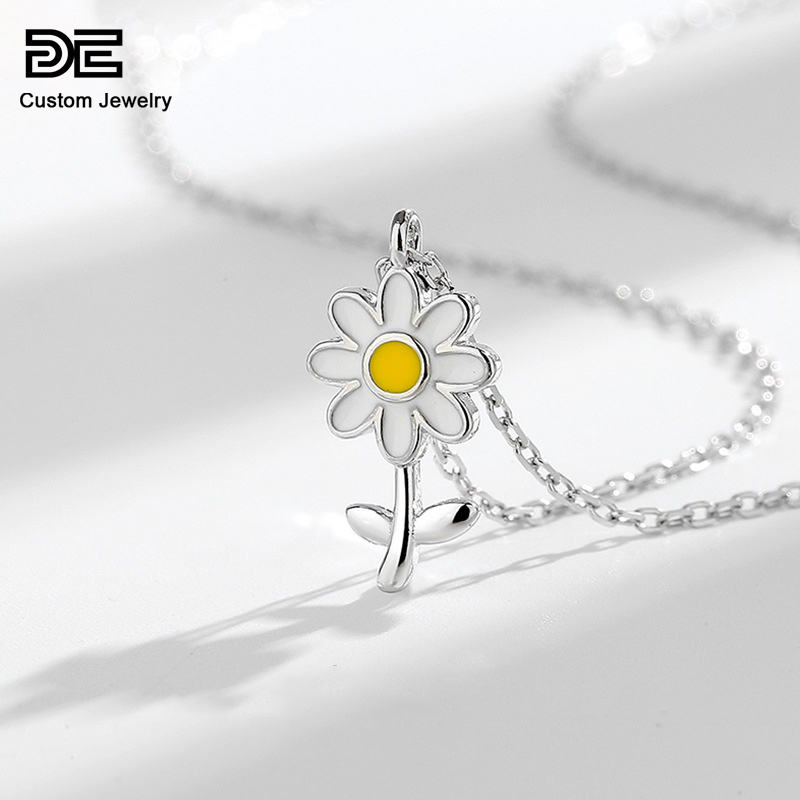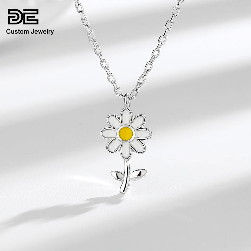 De carino divertente fiore di girasole in resina a forma di margherita in argento Sterling 925 ciondolo collana 925 placcato in oro da indossare ogni giorno