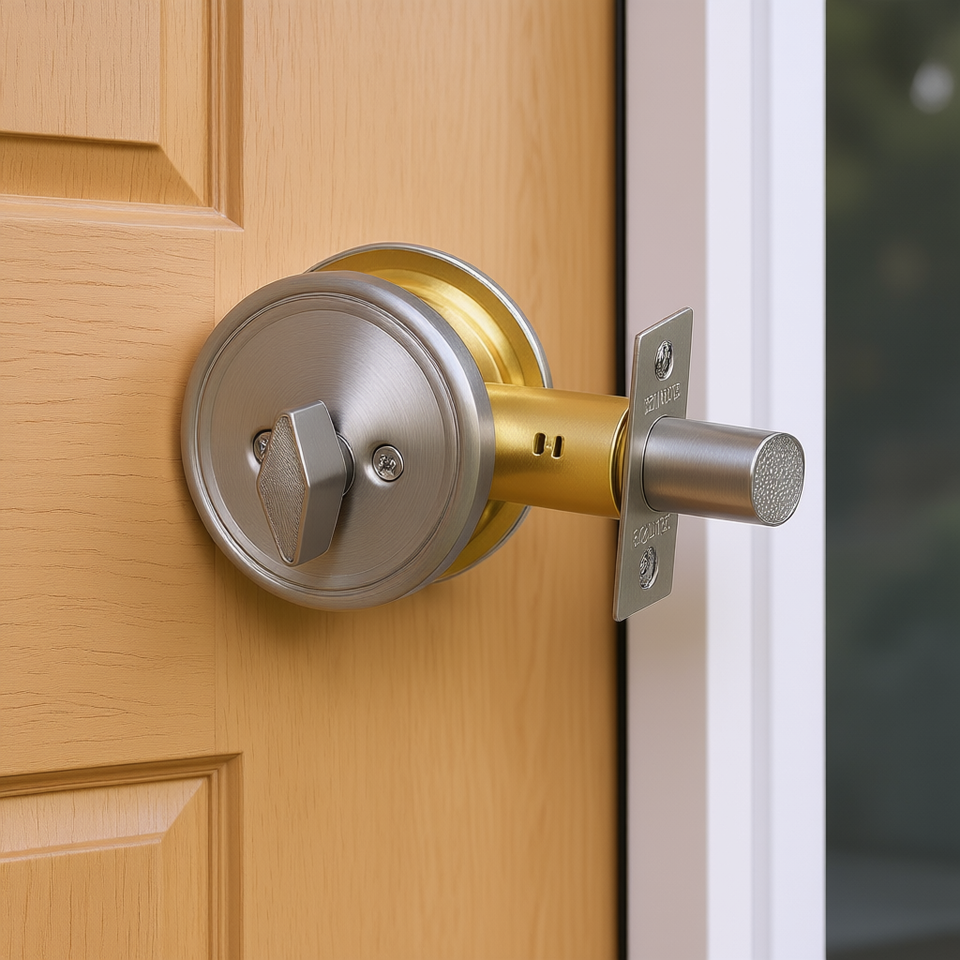 Serratura a Cilindro Singolo in Ottone Satinato Nichelato con 3 Chiavi, Design Contemporaneo