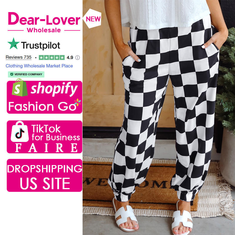 Dear-Lover pantaloni da donna elastici a scacchiera nera pantaloni da donna