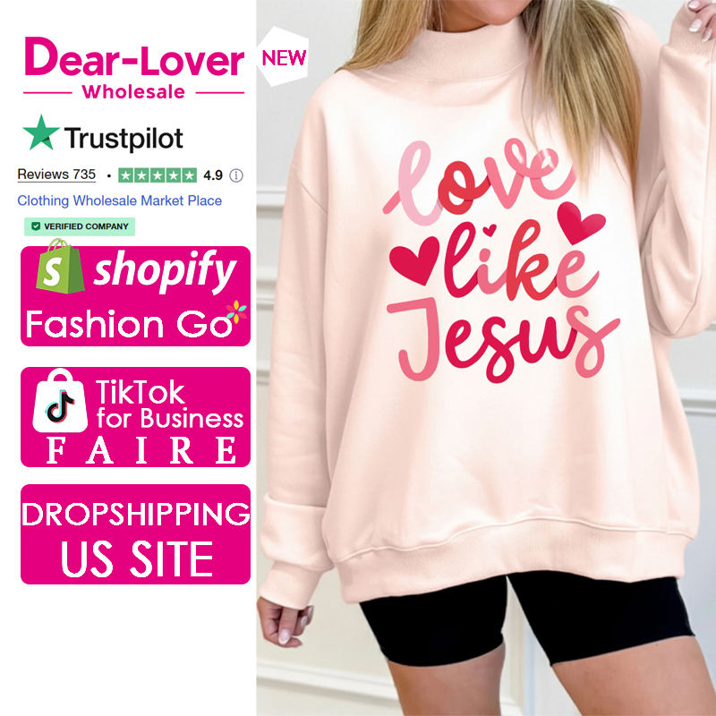 Dear-Lover Wholesale Boutique Clothing Light Pink Love Like Jesus Valentines Day Mock Neck Sweatshirt