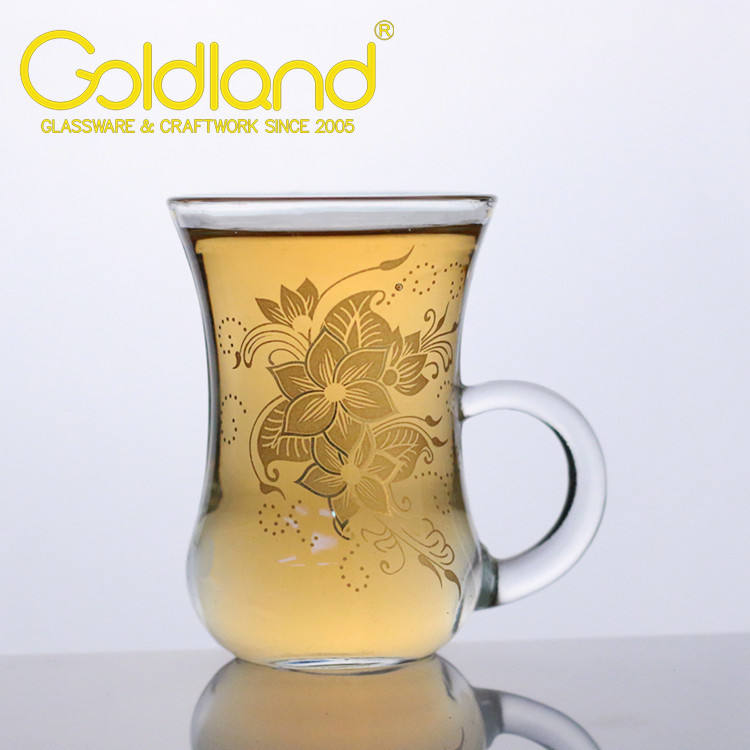 Decalcomania di stampa turco tazza di tè con manico di vetro personalizzati tazza di caffè