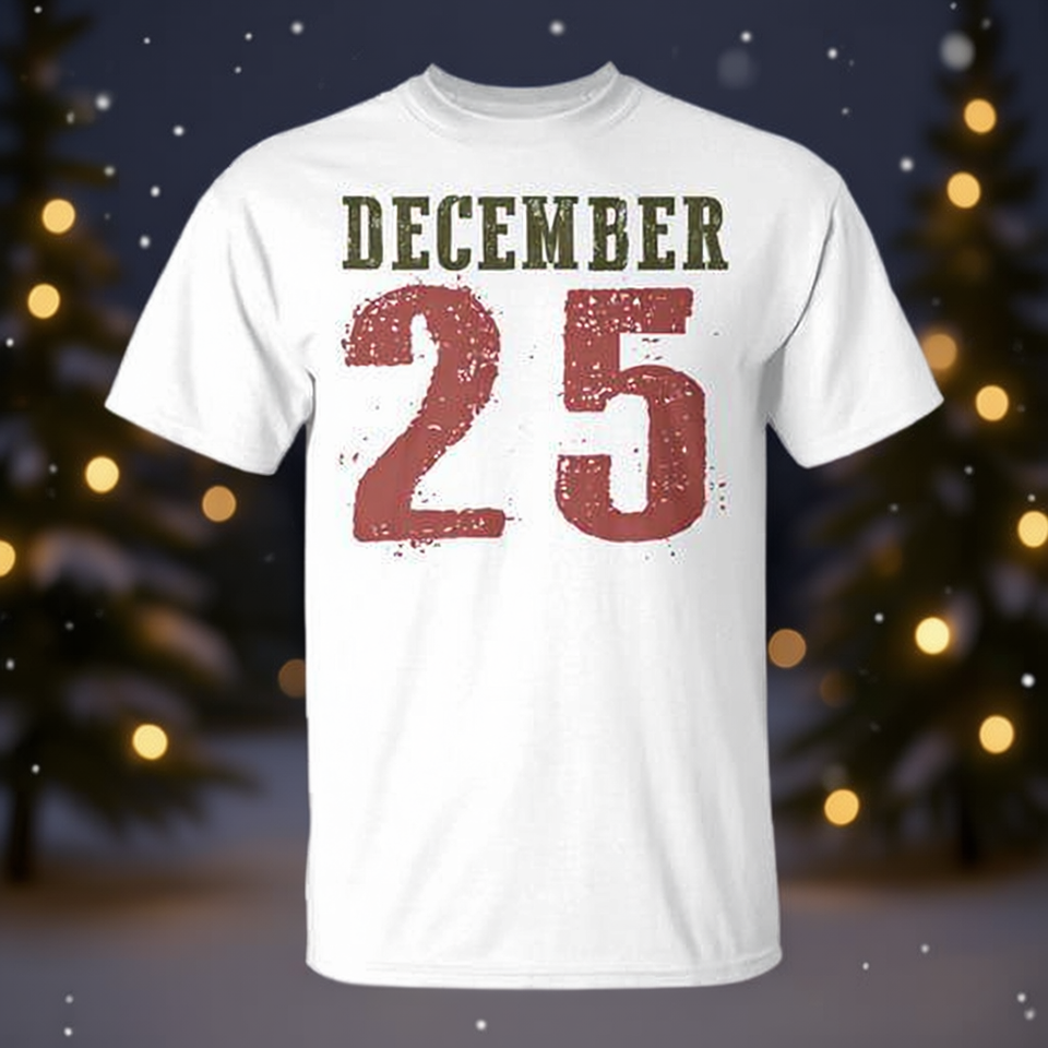 Maglietta natalizia del 25 di dicembre con design retrò, abbigliamento bianco da uomo
