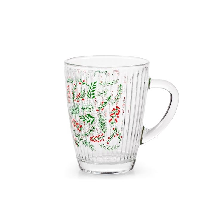 Tazza in Vetro Decorata con Motivo Frutti di Bosco 30 Cl, Design Festivo