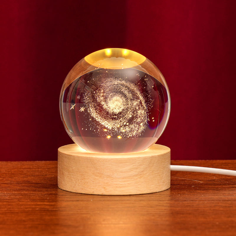 Decorazione sistema solare pianeta sfera Laser intagliato luce notturna personalizzata 3D arte sfera di cristallo con Base in legno luce Led