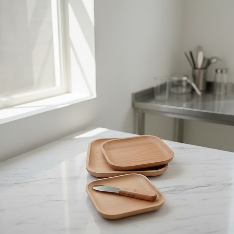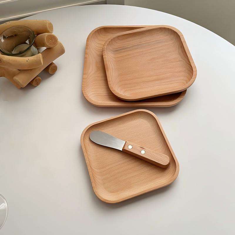 Vassoi Decorativi e di Grado Commerciale in Legno di Faggio Sostenibile, Bestseller di Fabbrica per Tè, Frutta, Cibo, Dessert e Caffè