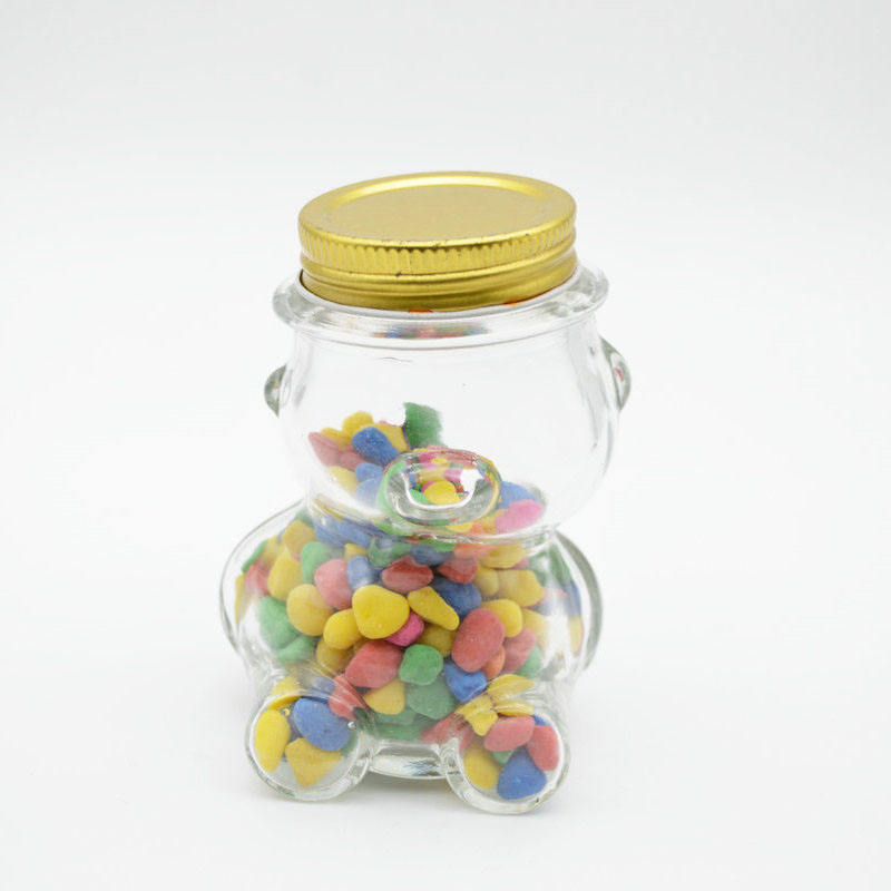 Decorative Teddy Bear Shaped Clear Glass Jar with Lids for Candy/Wish Star Storage