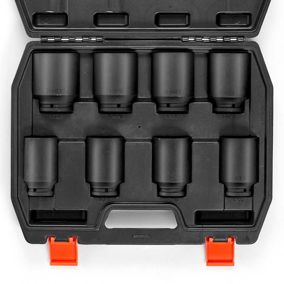Set di chiavi a bussola a impatto per dadi di asse, profonda serie 6-8 pezzi, SAE, CR-MO trattato termicamente, per riparazioni auto, attacco da 1/2 pollice