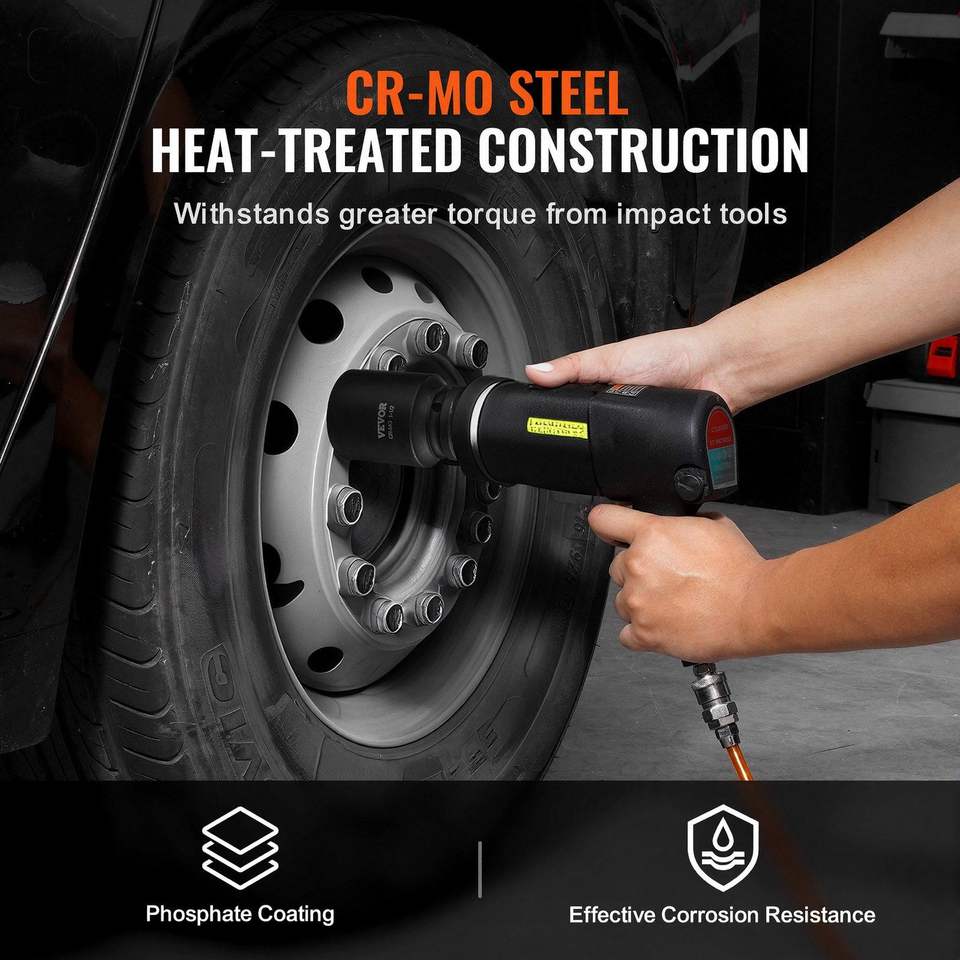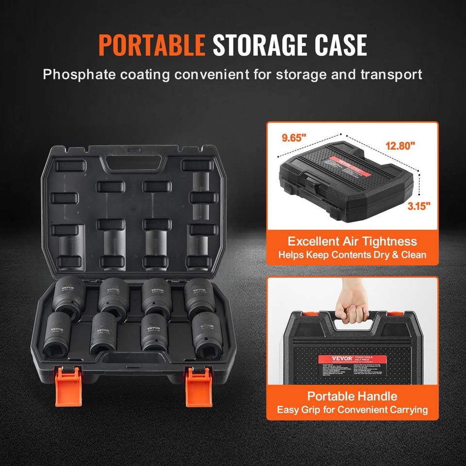 Set di chiavi a bussola a impatto per dadi di asse, profonda serie 6-punti, 8 pezzi, SAE, in CR-MO trattato termicamente, attacco da 3/4 pollici