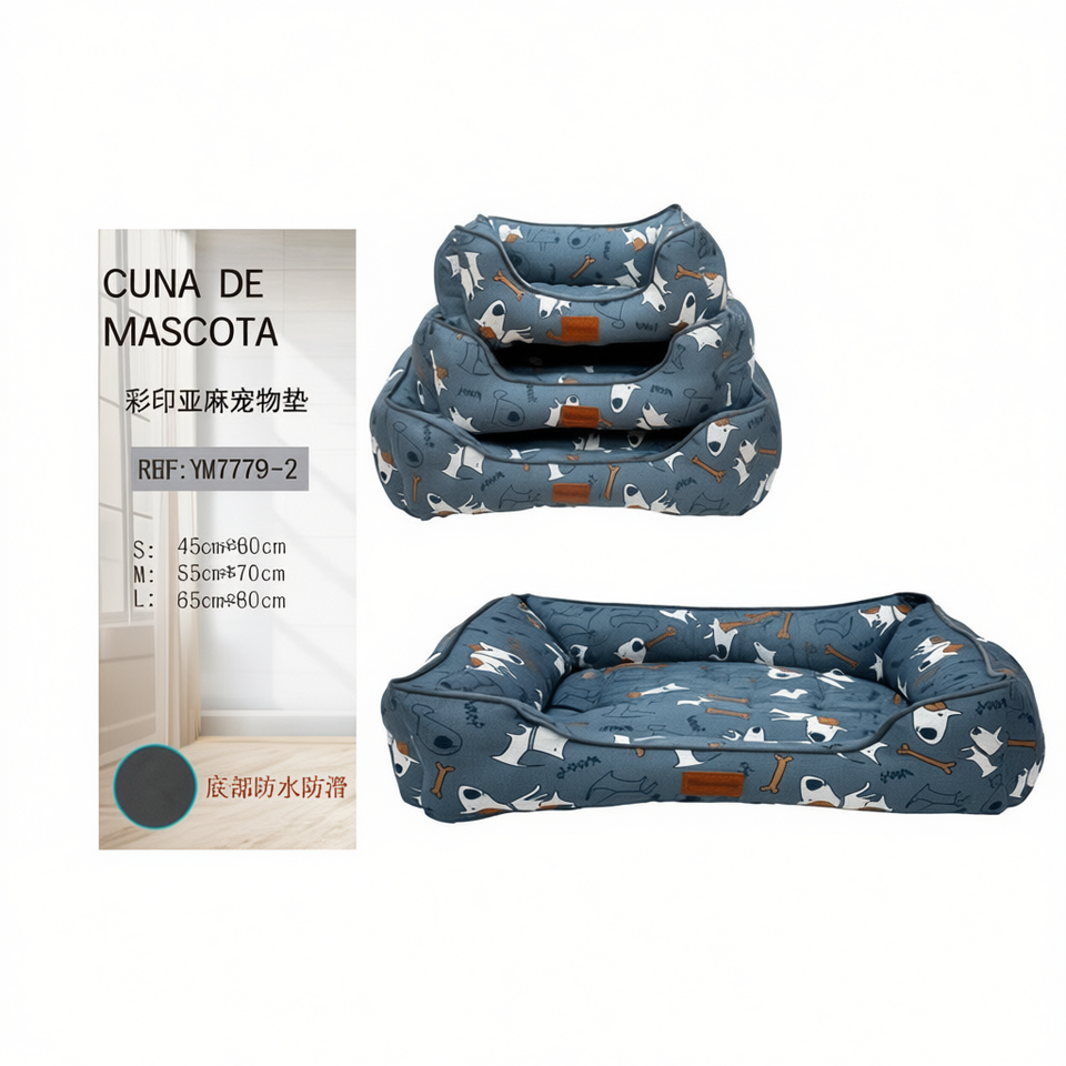 Deep Blue Linen Dog House Set Printed Three-Piece with Comfortable Bottom for Pups Pet Beds