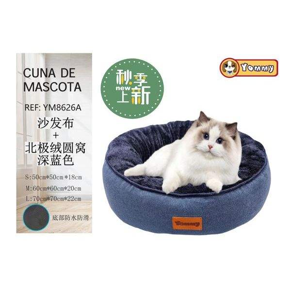 Deep Blue Nest Pet Bed with Sand Release & Arctic Velvet Round Shape