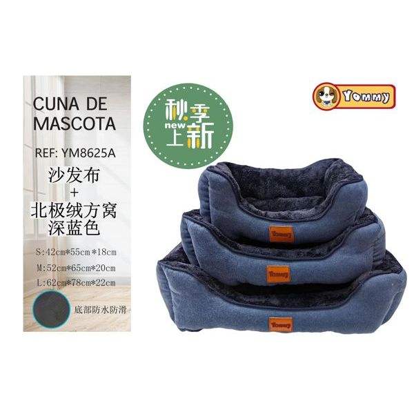 Deep Blue Square Nest Pet Bed with Sand Release and Arctic Velvet Material