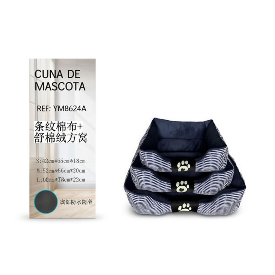Deep Blue Striped Cotton Fabric and Plush Square Nest for Pet Beds