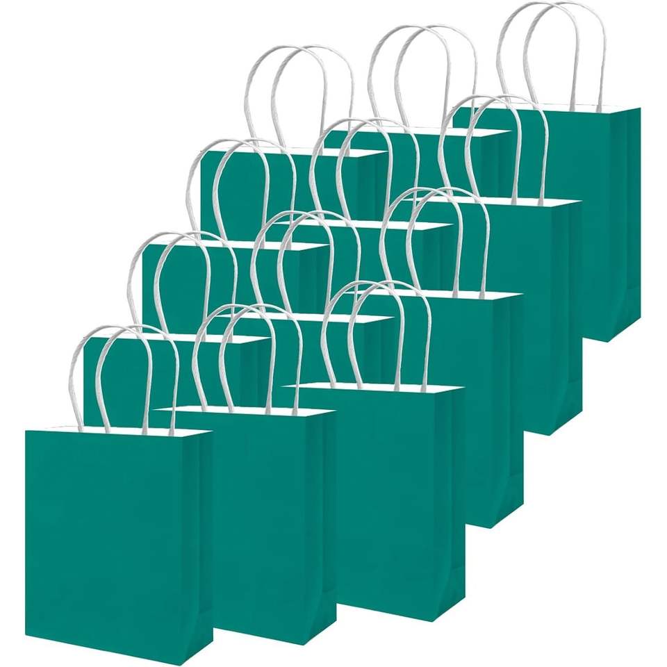 Sacchetti Regalo in Carta Verde Scuro 21x7.6x15.2 cm con Manici, Confezione da 100 Pezzi, Sacchetti per Bomboniere Multiuso