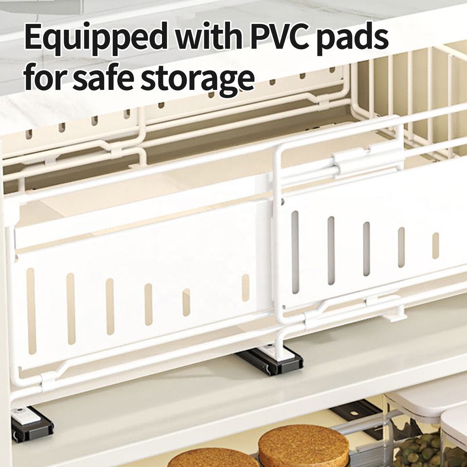 Organizzatore per armadio estraibile profondo larghezza espandibile pentole e padelle portaoggetti ripiano scorrevole regolabile