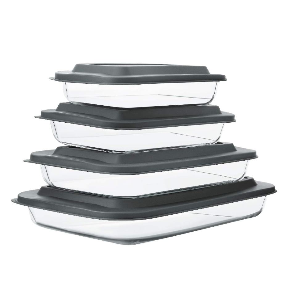 Set di teglie in vetro rettangolare profondo coperchi in plastica lavabili per lavastoviglie da congelatore a forno