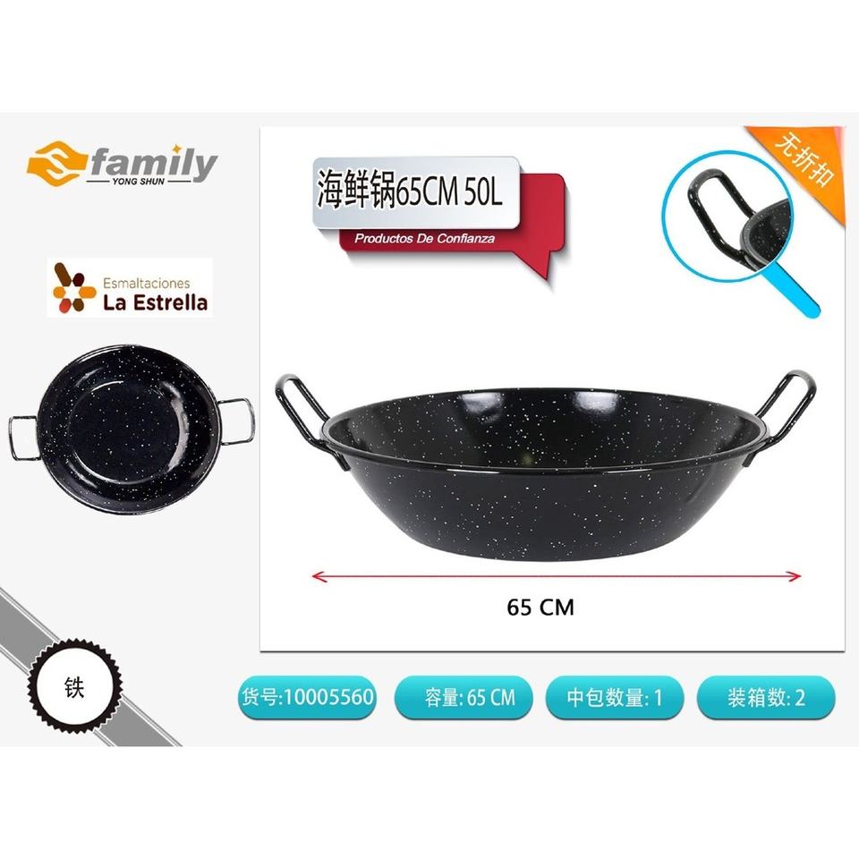 Deep, ribbed paella pan, 65cm, 50L, marbled for cooking