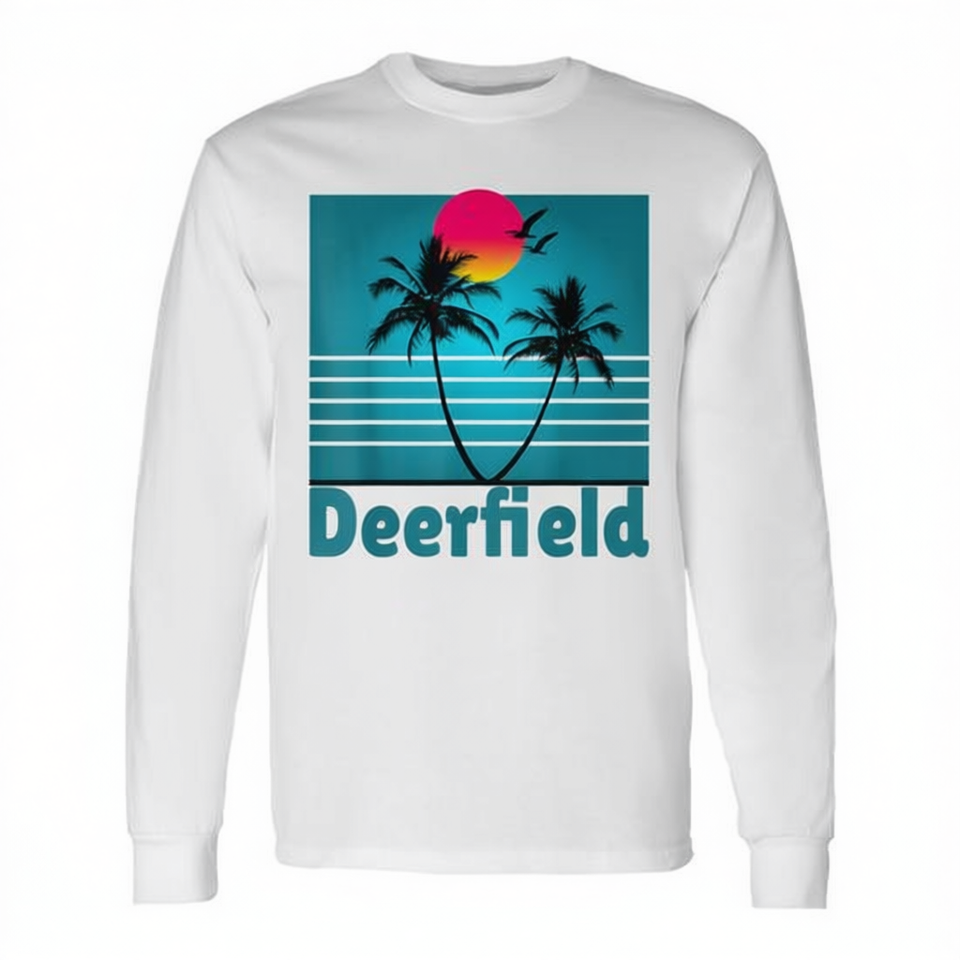 T-shirt promozionale a maniche lunghe con souvenir di gabbiani estivi di Deerfield Beach, Florida