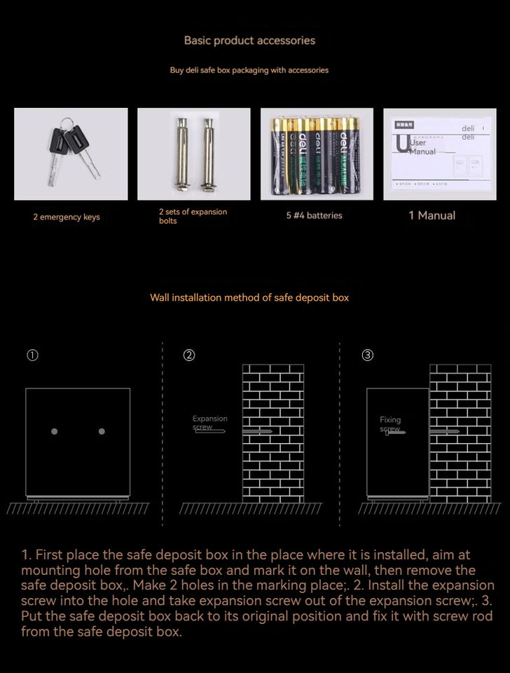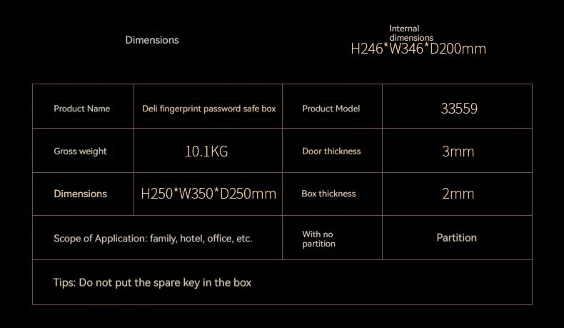 Cassaforte Deli 33116 per Ufficio, Casa, Hotel, Mini Cassaforte Intelligente di Alta Qualità