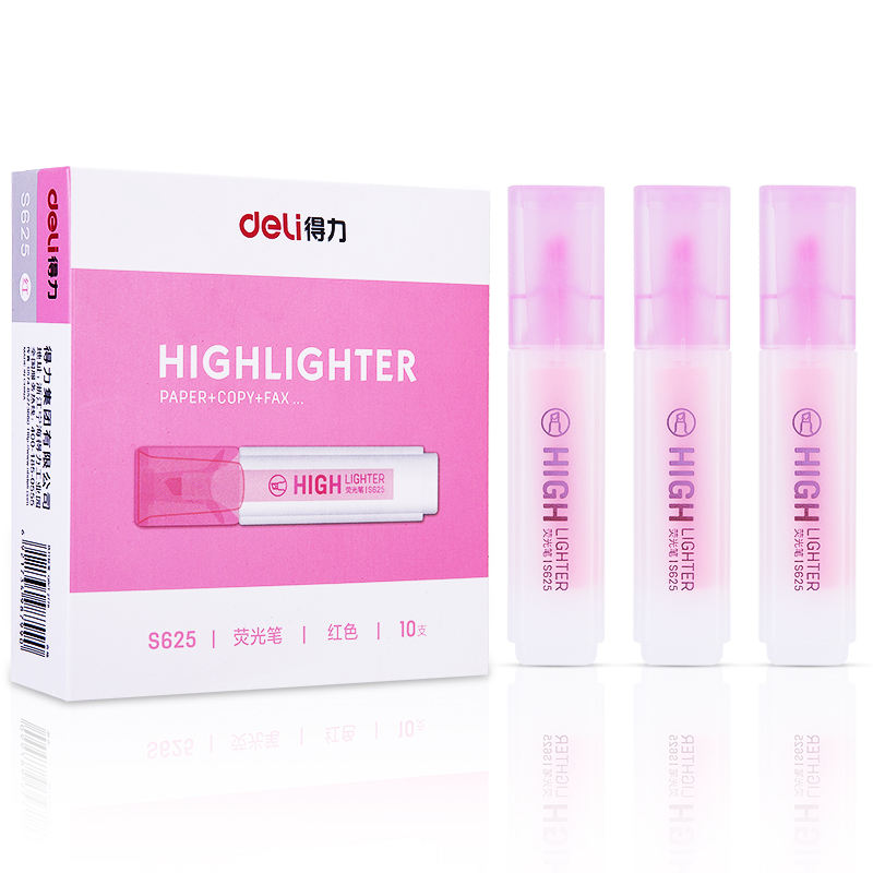 Evidenziatore Deli S625 ROSSO con Gradiente di Colore, Protezione per gli Occhi, Alta Qualità Estetica, Marcatori Colorati per Punti Chiave, Punta Obliqua per Marcatura