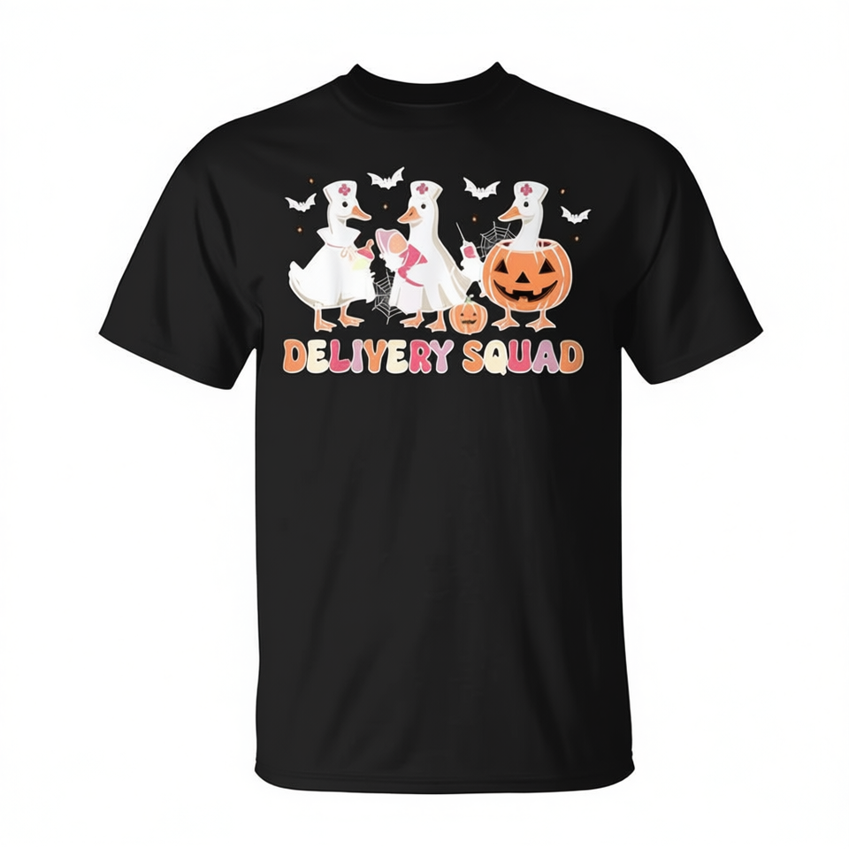 T-shirt da infermiera per il parto, modello Delivery Squad Halloween Goose Spooky