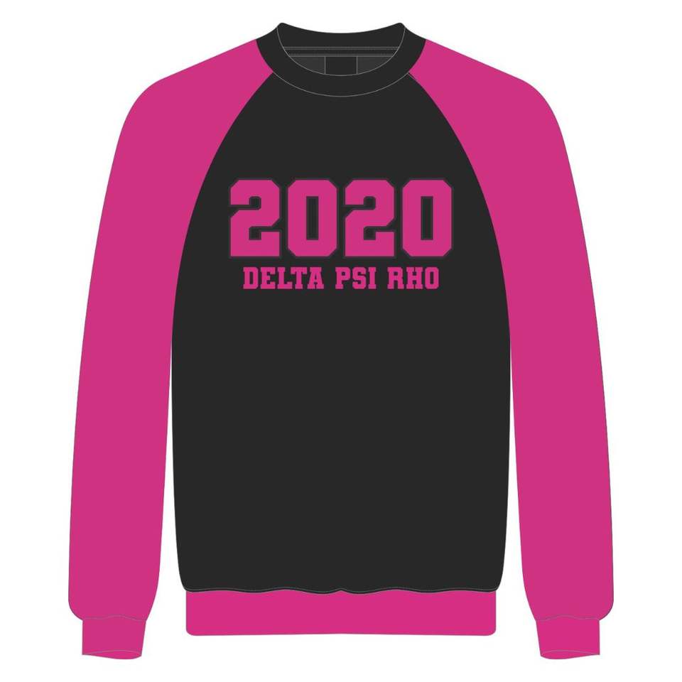 Delta Psi Rho Sorority Raglan Sleeve Crewneck Sweatshirt Black Cotton Poly Founding Year 2020 Jumper Greek Life Casual Apparel
