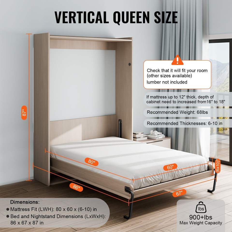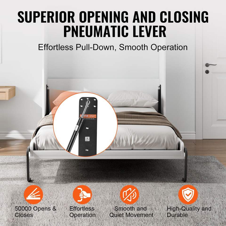 Kit Letto a Scomparsa Verticale Queen Size Deluxe Fai-da-te, con Leva Pneumatica Rinforzata e Supporto per Telaio Letto a Muro, Hardware Meccanico New Age