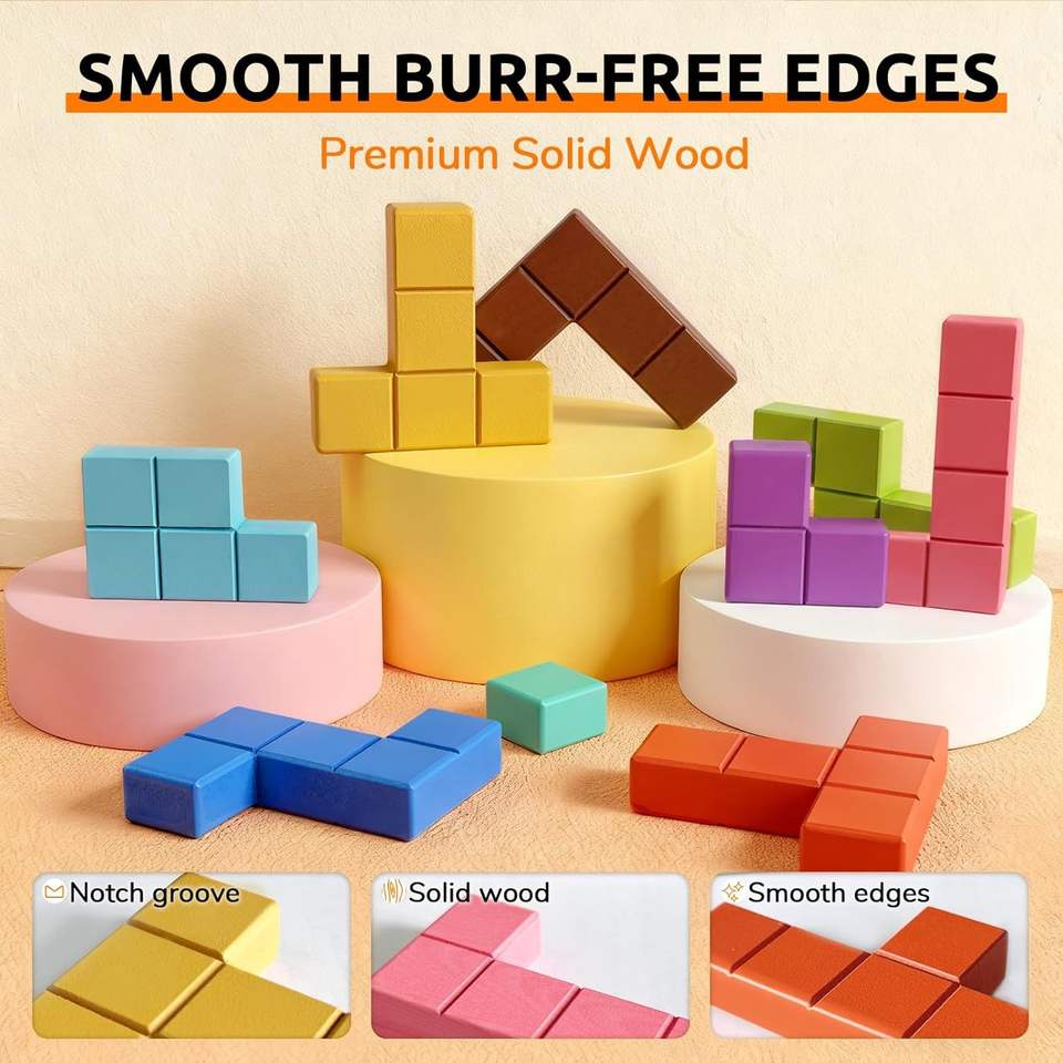 Gioco di Memoria per Anziani con Demenza, 40 Tessere in Legno a Doppia Faccia con Divisorio in Feltro e Borsa Portaoggetti, Gioco da Tavolo per Adulti Anziani