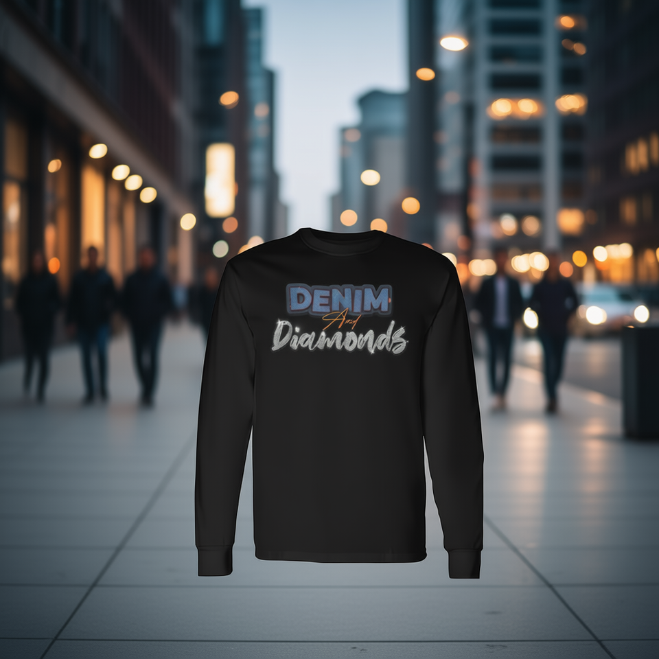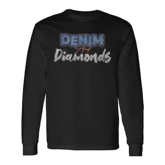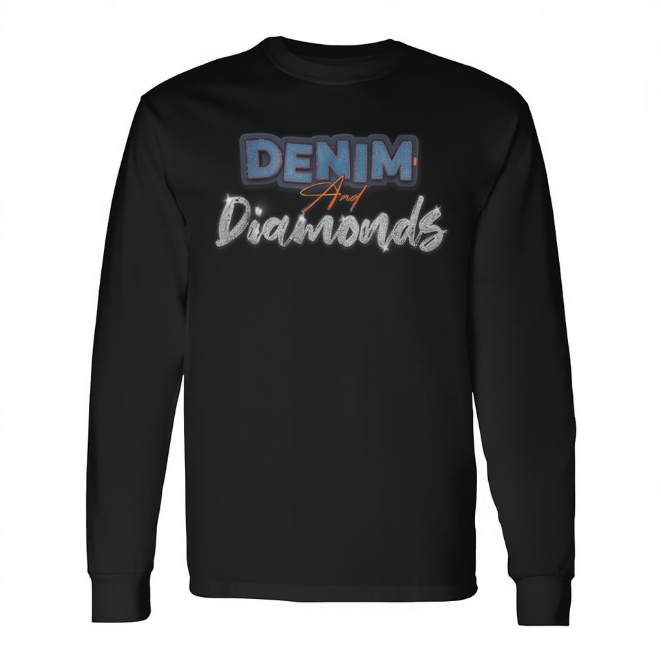 T-shirt a maniche lunghe Denim And Diamonds in cotone nero con grafica alla moda
