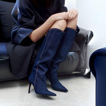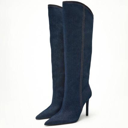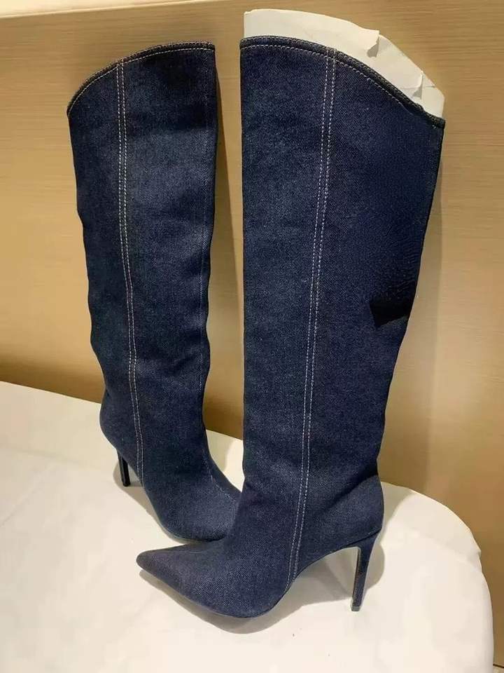 Stivali da Donna al Ginocchio in Denim Blu, Nuovo Stile, per Inverno e Autunno