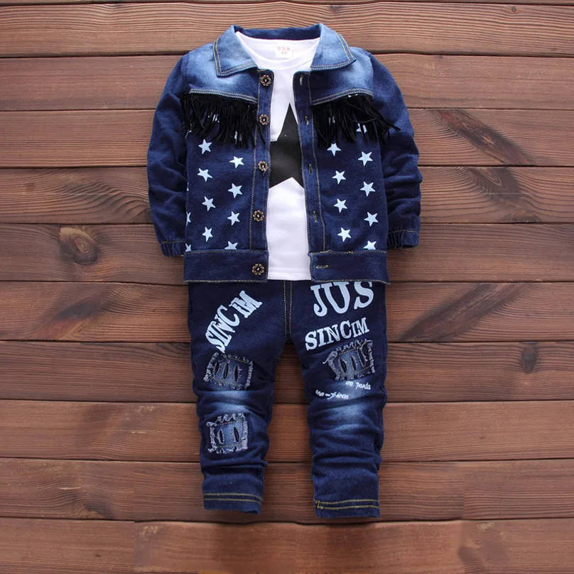 Completo in denim per bambini (giacca, maglietta, jeans)