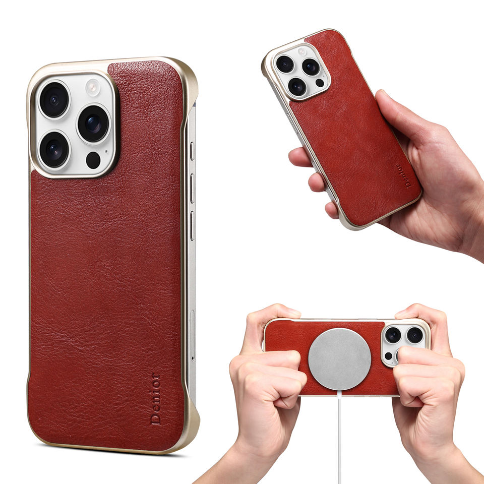 Denior | Texture in Vera Pelle di Vitello, Magnete Invisibile Integrato, Supporta la Ricarica Wireless, Compatibile con iPhone Serie 16/15/14