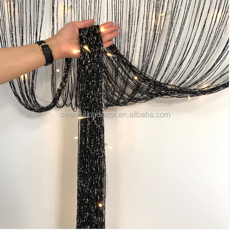 Denso Nero di Spaghetti Fringe String Filo Pannelli di Tamponamento Divisorio Fly Screen per Soggiorno
