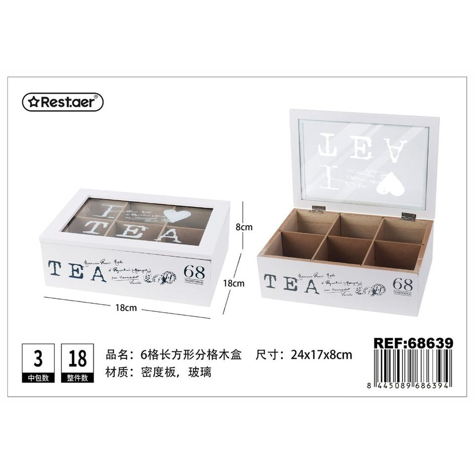 Density wood box with 6 compartments 24x17x8 cm (repeat) - Gift storage and decoration