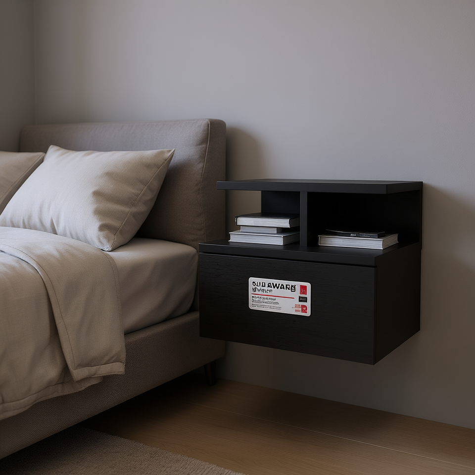 Comodino Sospeso Depot E Shop con 1 Cassetto Nero, Moderno e Minimalista, Arredamento per Camera da Letto