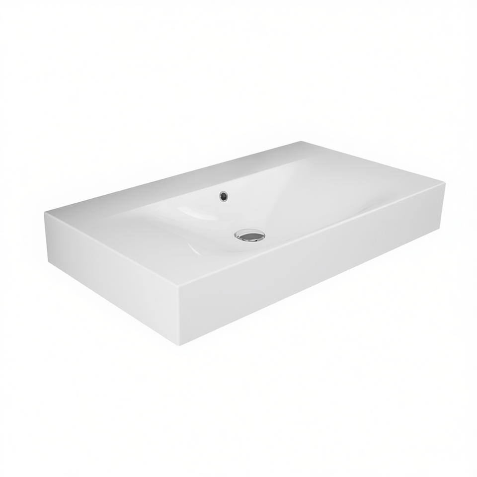 Lavabo Sospeso Des 100 Cm Senza Foro per Rubinetto, Lavandino da Bagno
