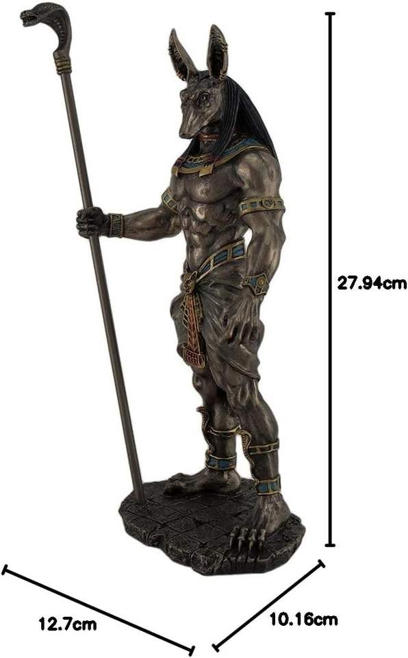 Statua Artistica in Resina Dipinta a Mano del Dio Egizio Anubis con Testa di Cobra e Scettro, Altezza 26,7 cm, Collezione Tema Amore